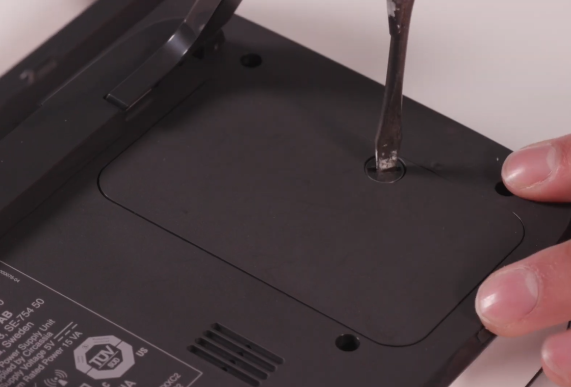 1. Place the Feno device upside down and open the back cover using either a screwdriver or a coin.